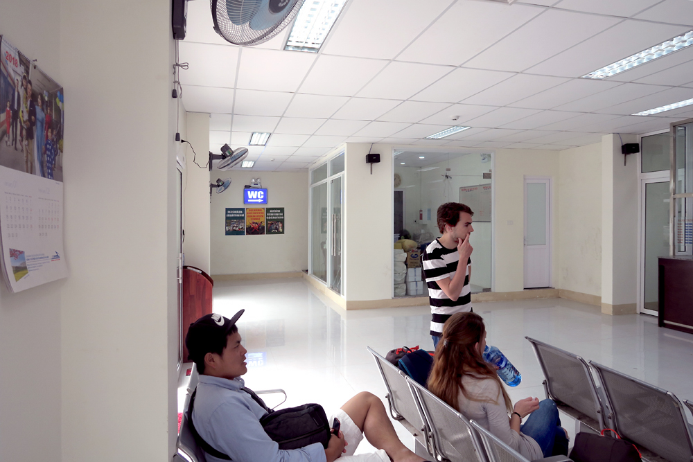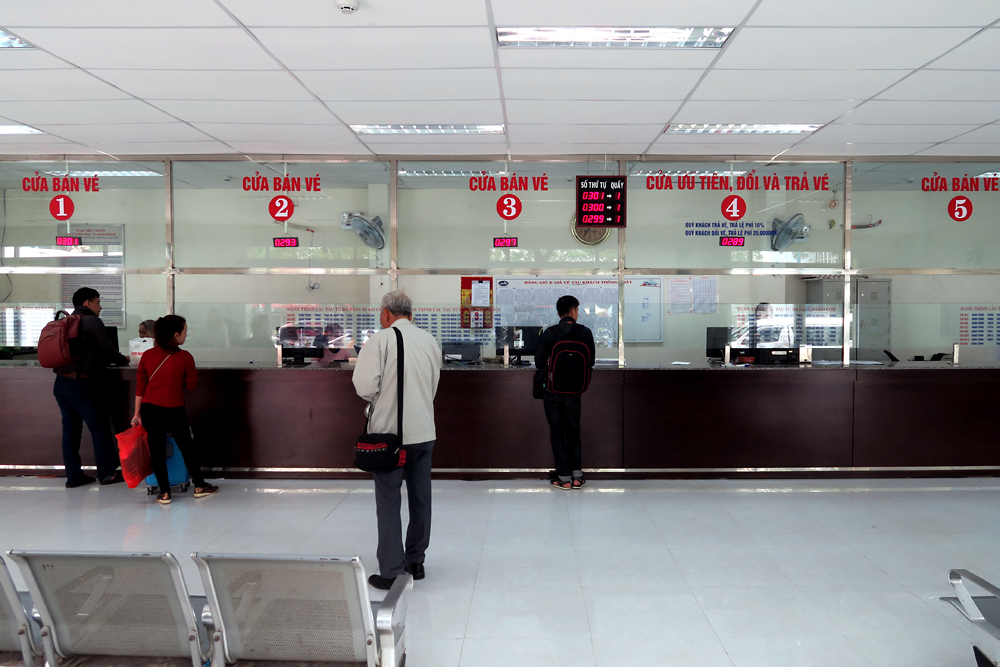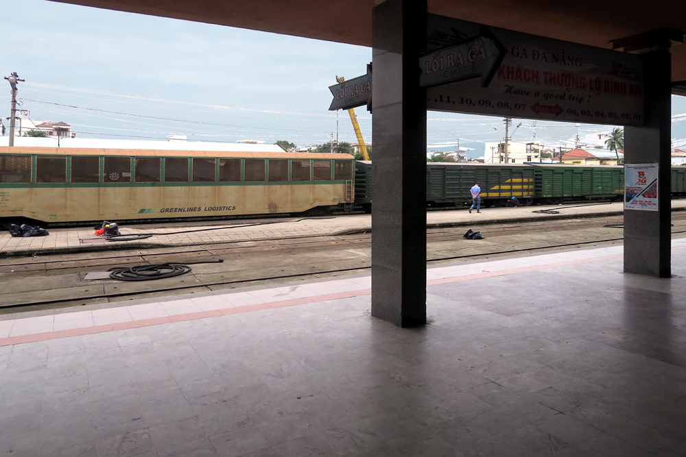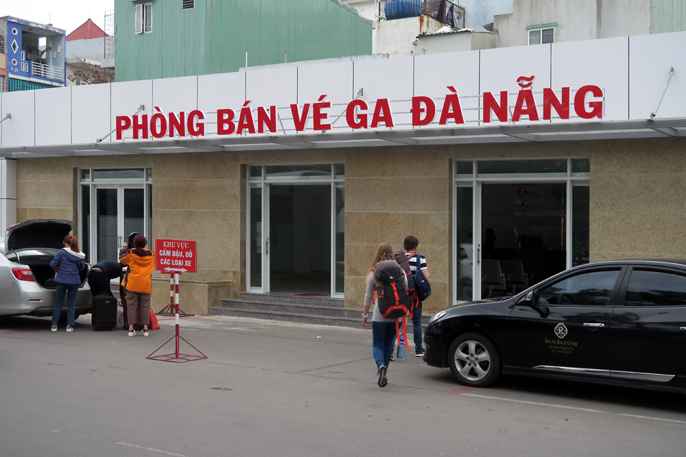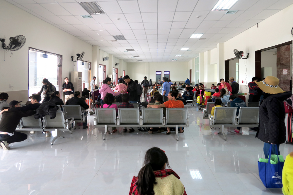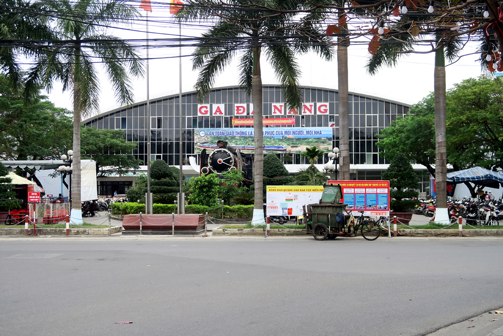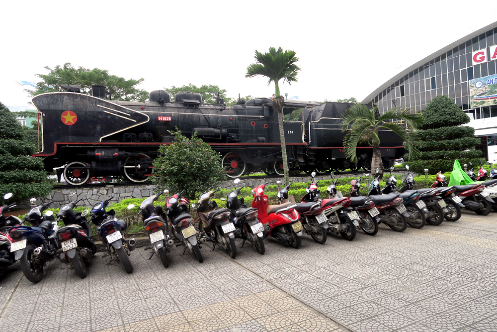 私はタウンウォッチがてら歩いて行ったが、列車を利用する旅行客だと荷物もあるのでタクシーで行くのが普通かと。前庭には迫力あるSLが展示してあり、バイクもたくさん停まっていました。外観は大きな印象ですが、中は至ってシンプルで待合室しかないのでアレコレ探したら、チケットカウンターは左隣の新しい建物に移転していました。飛行機に比べて料金が安いので、バックパッカーなども利用していました。
