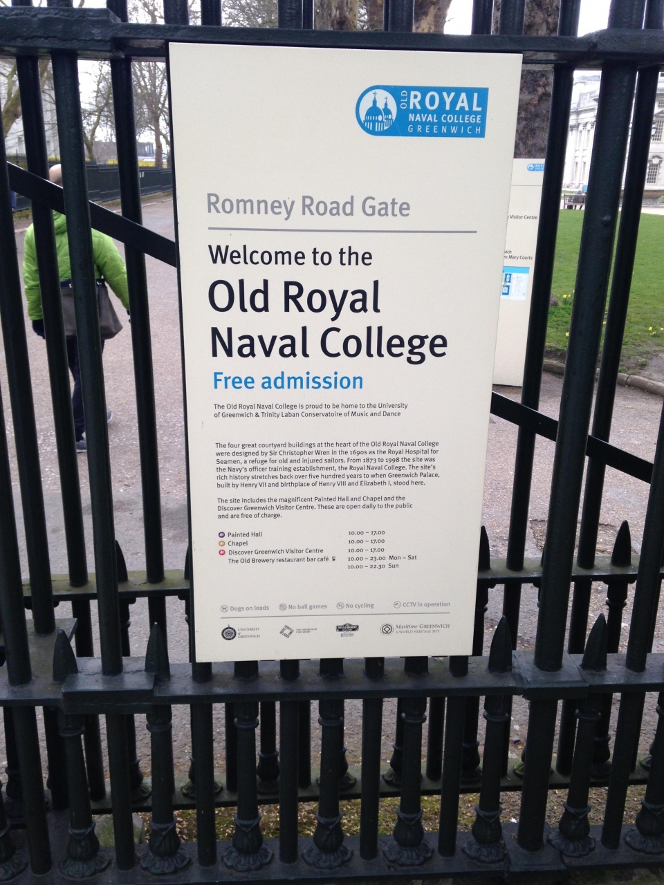 カティサークの東側にある重厚な建物で旧王立海軍学校で現在はグリニッジ大学として使われています。校内には自由に出入りできます。建物内は無料で入れるチャペルや有料のペインティド・ホールがあります。敷地内はよく整備されており、テムズ川を見る景色もよいです。