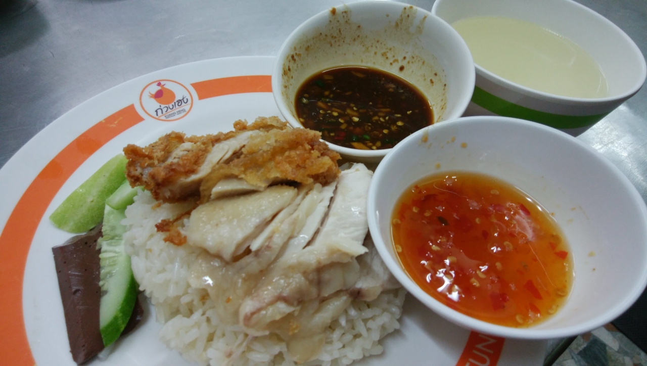 カオマンガイはもちろん、ガイトー(唐揚げ)もあり、ピンクのカオマンガイとの違いはガイトーがあることです。