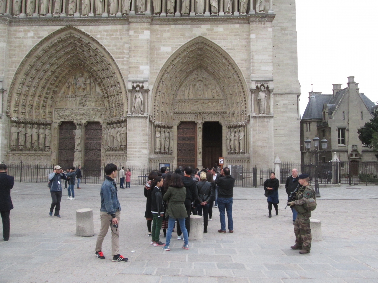 ノートル ダム寺院周囲にはライフルを持った警備目的の軍人を見かけました。すぐ近くに大きい警察署があるのもことも理由ですが、実際にテロの被害を受けている国のひとつであり、こういった厳しい対策を図られないと安全が確保できないと感じました。