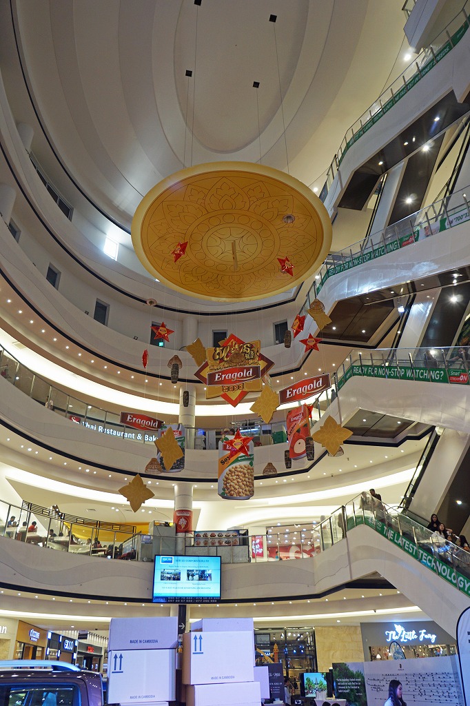 日本でもイオンモールなんて行ったことが無かったので大興奮です。カンボジアのお正月前の日曜日なのでとても混雑していました。通路には高級車が並びきれいなお姉さんが案内していました。スーパーにも入ってみましたがレジがすごい列だったので特に買い物はしませんでした。1階にマンゴやA/Xくらいのブランドは入っていました。タイのNARAYAを探したのですが無くなっているようで見つけられませんでした。3階のシネコン屋ゲームセンターはまるで日本のようでしたが、太鼓の達人で日本語なのに地元の子供が上手に叩いているのが不思議でした。1回の表になりますがワタミの食事もおいしかったです。それとhvalaというワッフルバーもお薦め。従業員の人が後方への出入りの度にお辞儀をしているのが日本的でした。