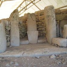 マルタで丸一日時間があったので観光致しました。時間の節約のため、渡航前に日本で、現地旅行社にチャーターを依頼しておりました。写真は、世界遺産の一構成資産であるハジャール・イム神殿です。保全に注力しているからか、全体がシートで覆われていました。