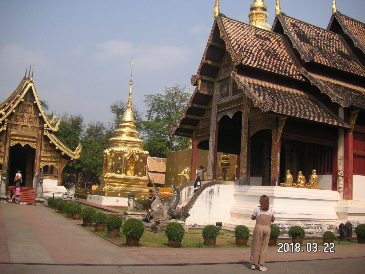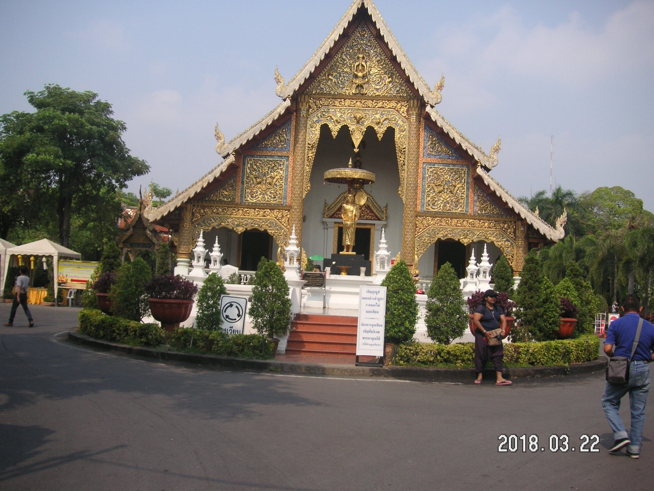 チェンマイ初日の宿泊の翌日4人グループ出3人はゴルフに行ったが、自分はゴルフが苦手なので、ホテルから近場の寺院に一人で徒歩で観光することにした。2箇所目がチェンマイでも最も古いとされる寺院であった。綺麗な建物である。観光客が沢山見えた。参拝料も支払いなく、建物の中には入らないで、外観だけ見て回った。