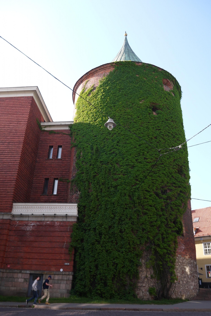 旧市街を散策している時に大きな円柱の建物にびっしり蔦が絡まっている建物を見つけました。 今はラトビア軍事博物館となっていますが、元は火薬を保管していた火薬塔とのことです。