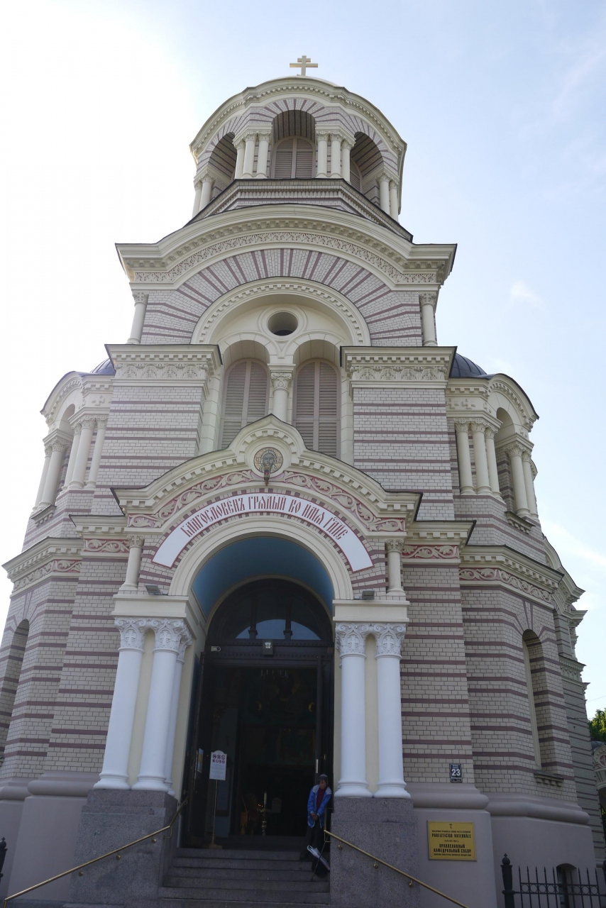 旧市街から自由記念碑の方向へ行って、通りを渡ったところにある公園です。 おおきなこうえで緑がいっぱいです。 公園の中には救世主生誕教会というロシア正教の教会があります。