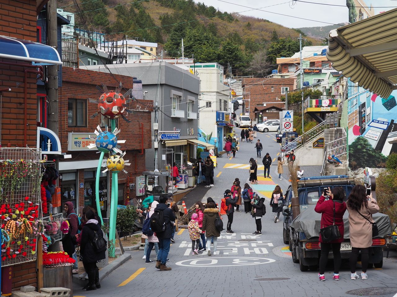 谷筋にカラフルに彩られた家々が広がっていて、細い路地にはアートが散りばめられています。観光案内所に地図がありますが有料です。そんなに広くはないので、無くても迷うことはないと思います。アップダウンもありますが、カメラをもって散歩するには最適です。午前中は人も少なくオススメです。