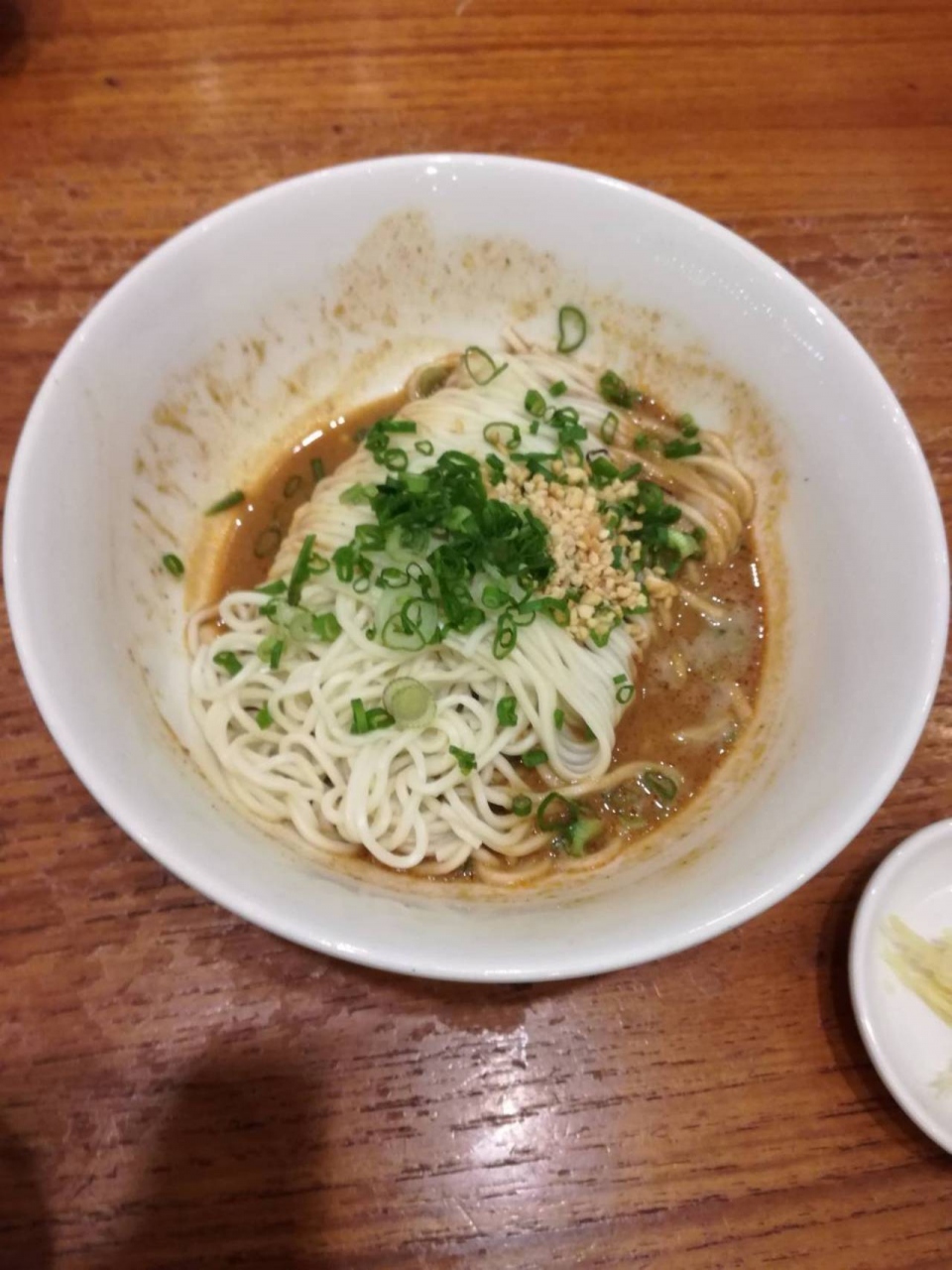 やっと出てきた担々麺、量は少ないし、めちゃくちゃぬるい!