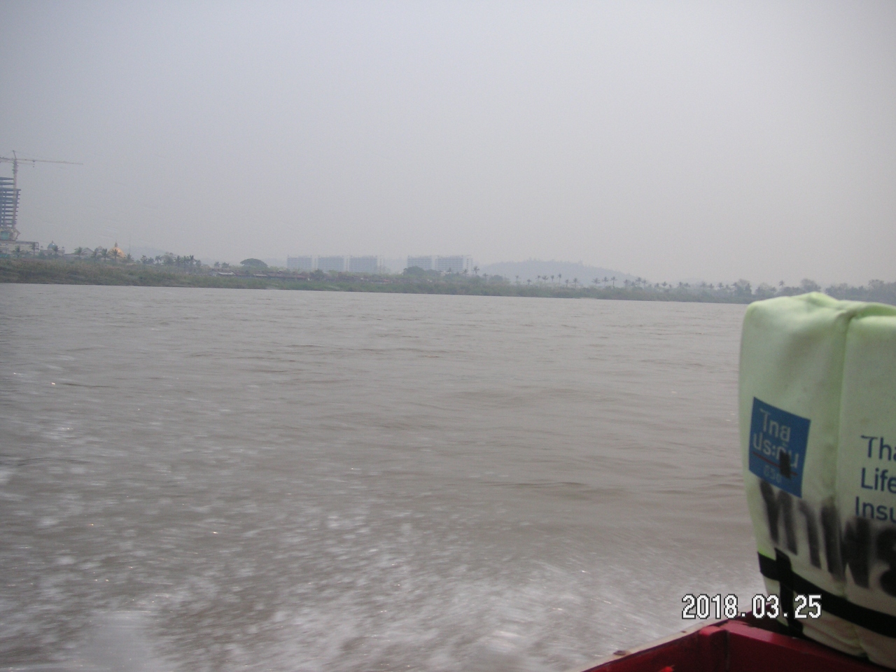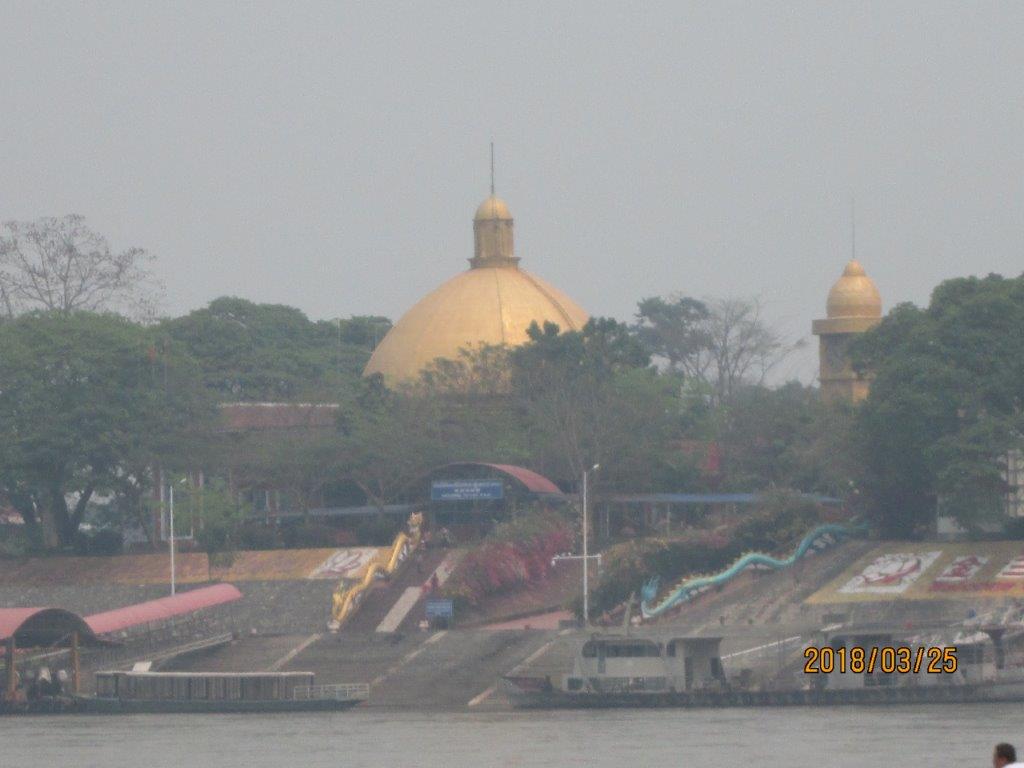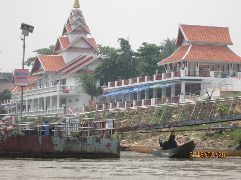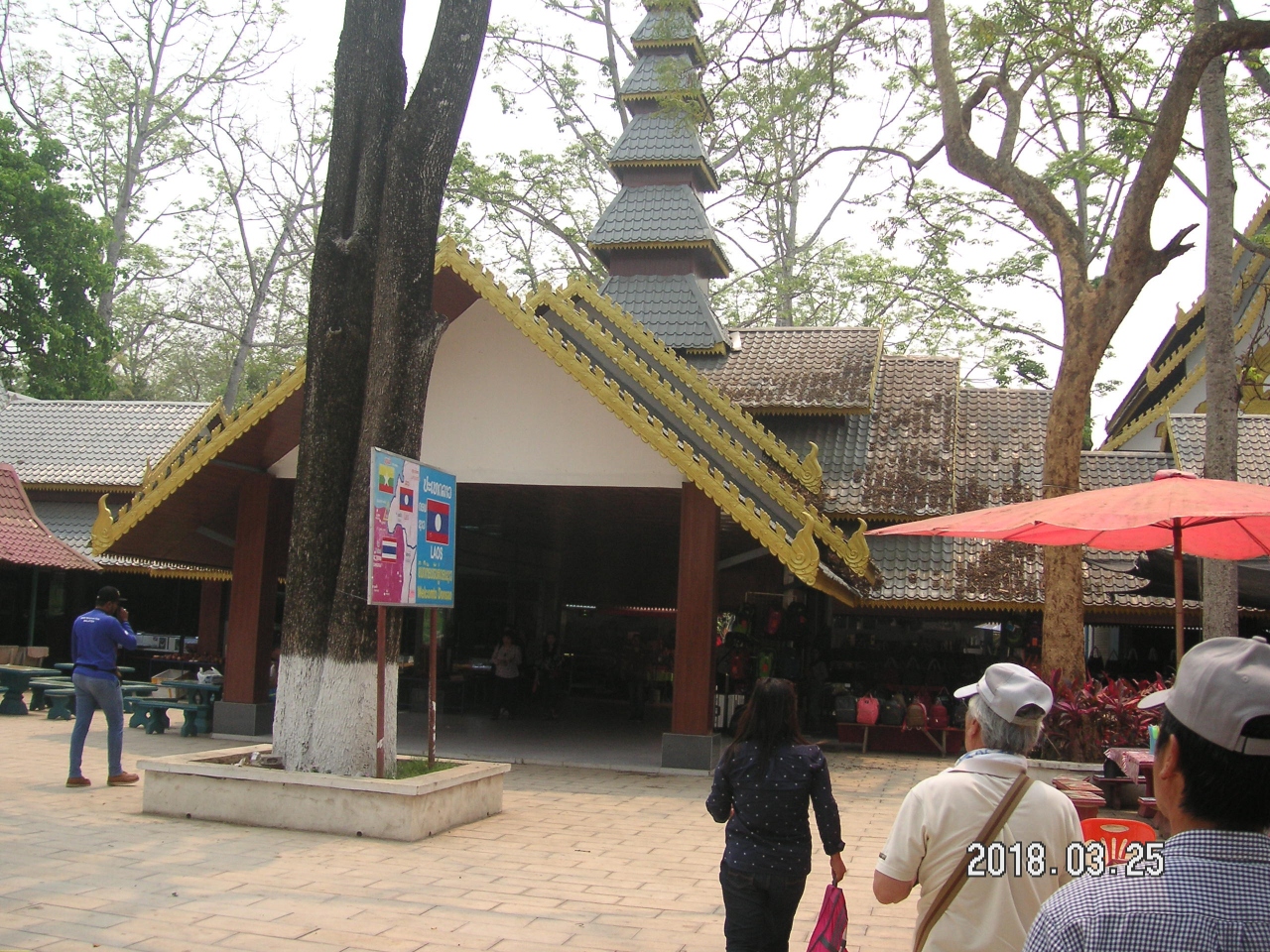 チェンマイハッピーツアーの観光最終コーナー、仲間の4人の観光も今日が最終日。日本語ガイド付きの1日観光「チェンライ1日ツアーゴールデントライアングル」でオプションでメコン川をモーターボートで渡り、ラオスへ入国のツアーであった。メーサイ国境のメコン川の船着き場の上でパスポートを渡して、救命道具を装着して船に乗り、ラオス国の地に初めて訪問した。土産物売り場だけの観光であったが、楽しいひと時を過ごすことが出来た。
