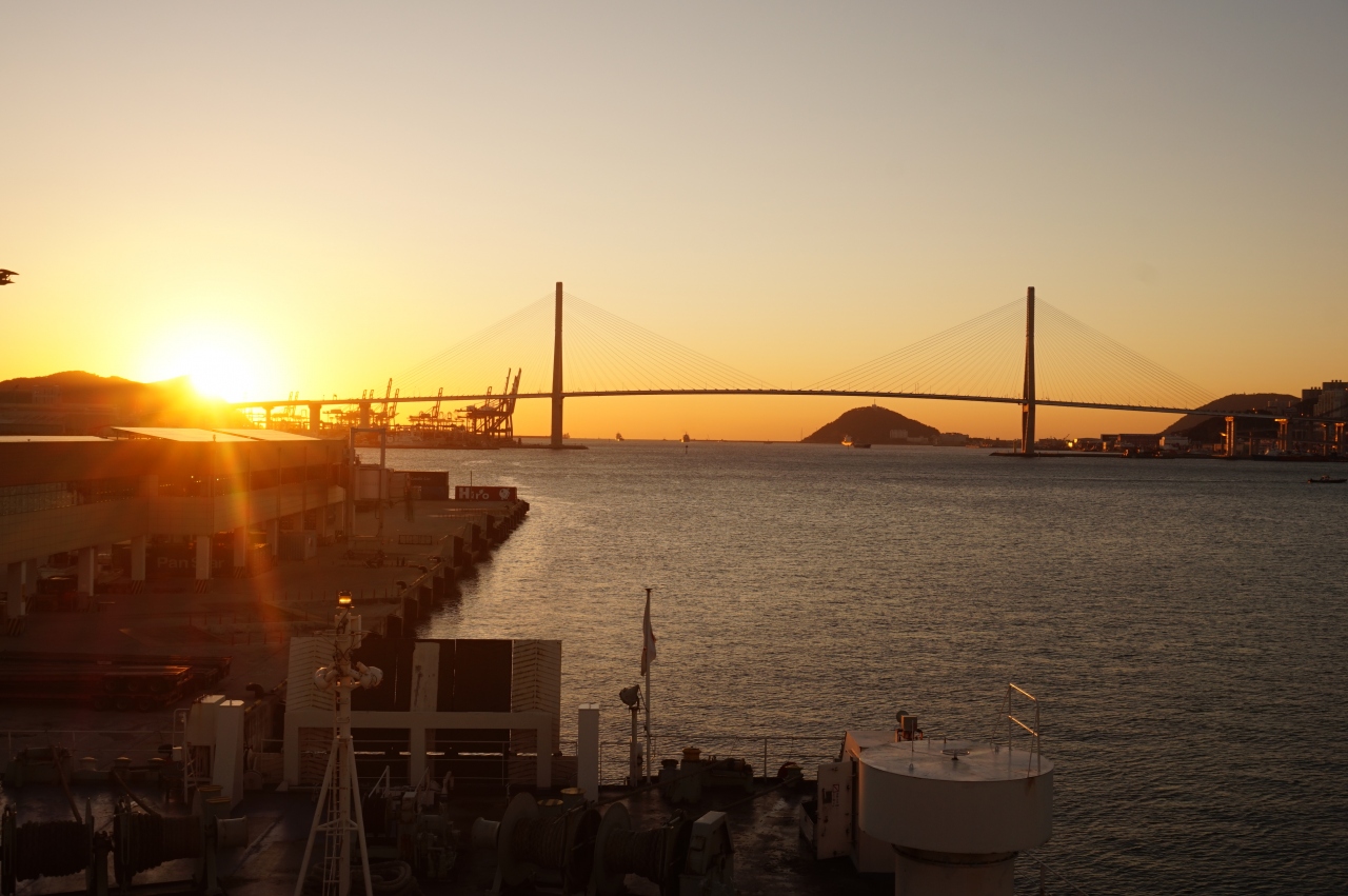 一番うつくしいのは、やはり関釜フェリーで帰国する時。楽しい韓国旅行のラストを彩ってくれます。博多行きのカメリアラインはデッキへの扉が閉鎖されていて、きれいに見ることができずに残念でした。