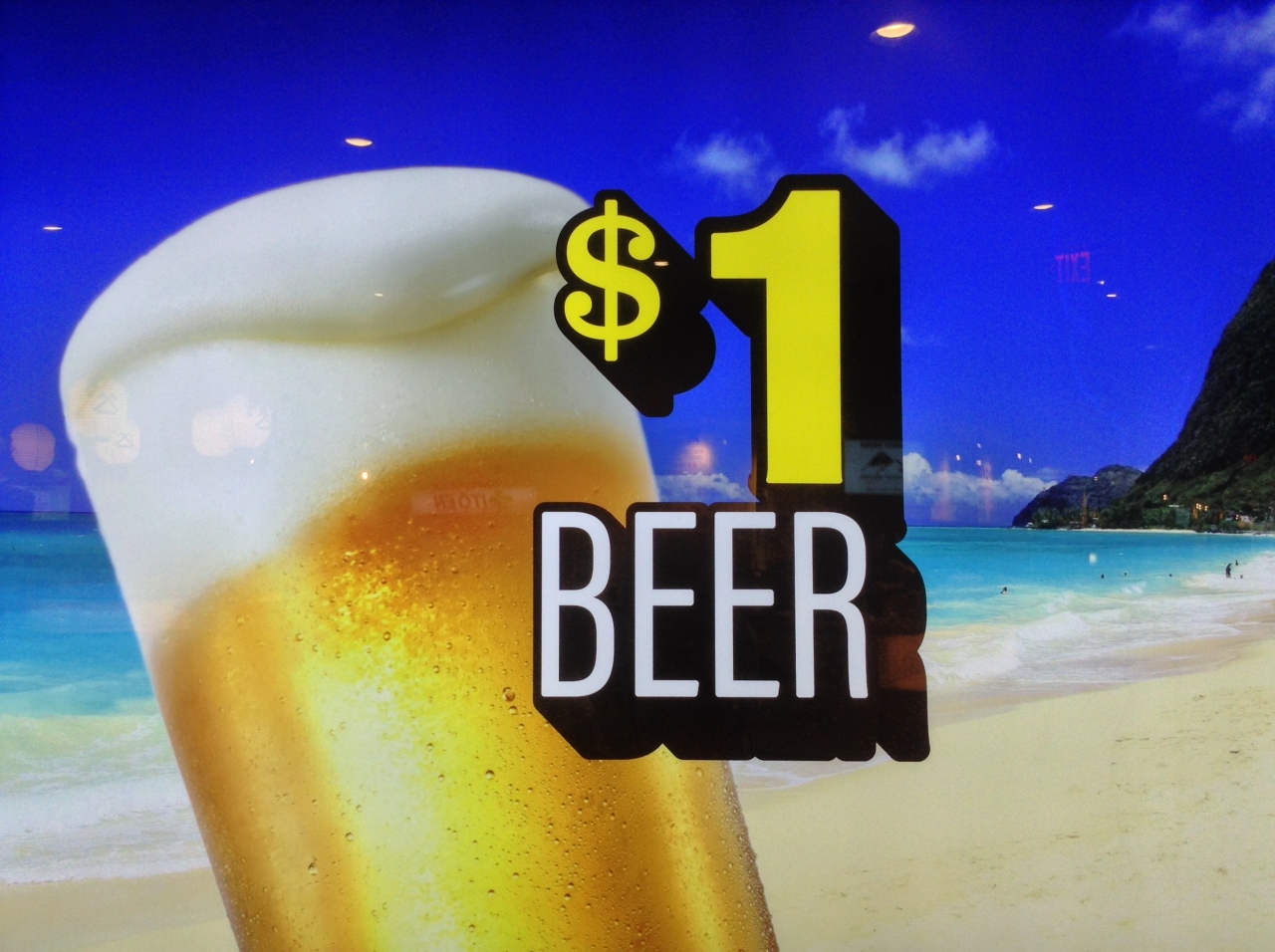アラモアナセンターでちょっと疲れたらここの1ドルビールを飲んでいました。