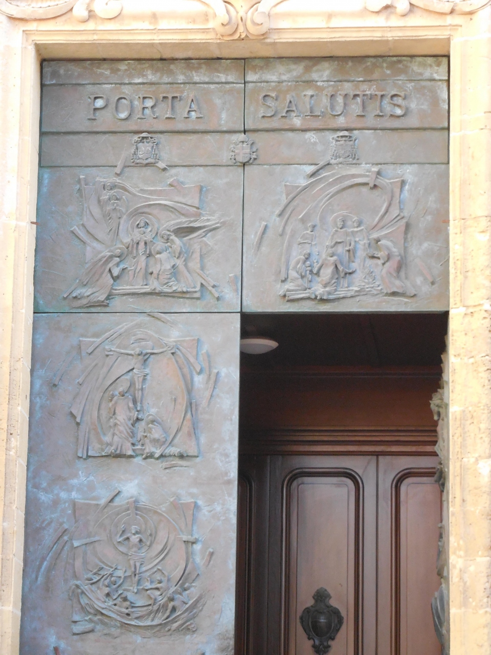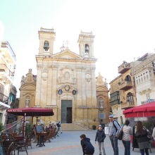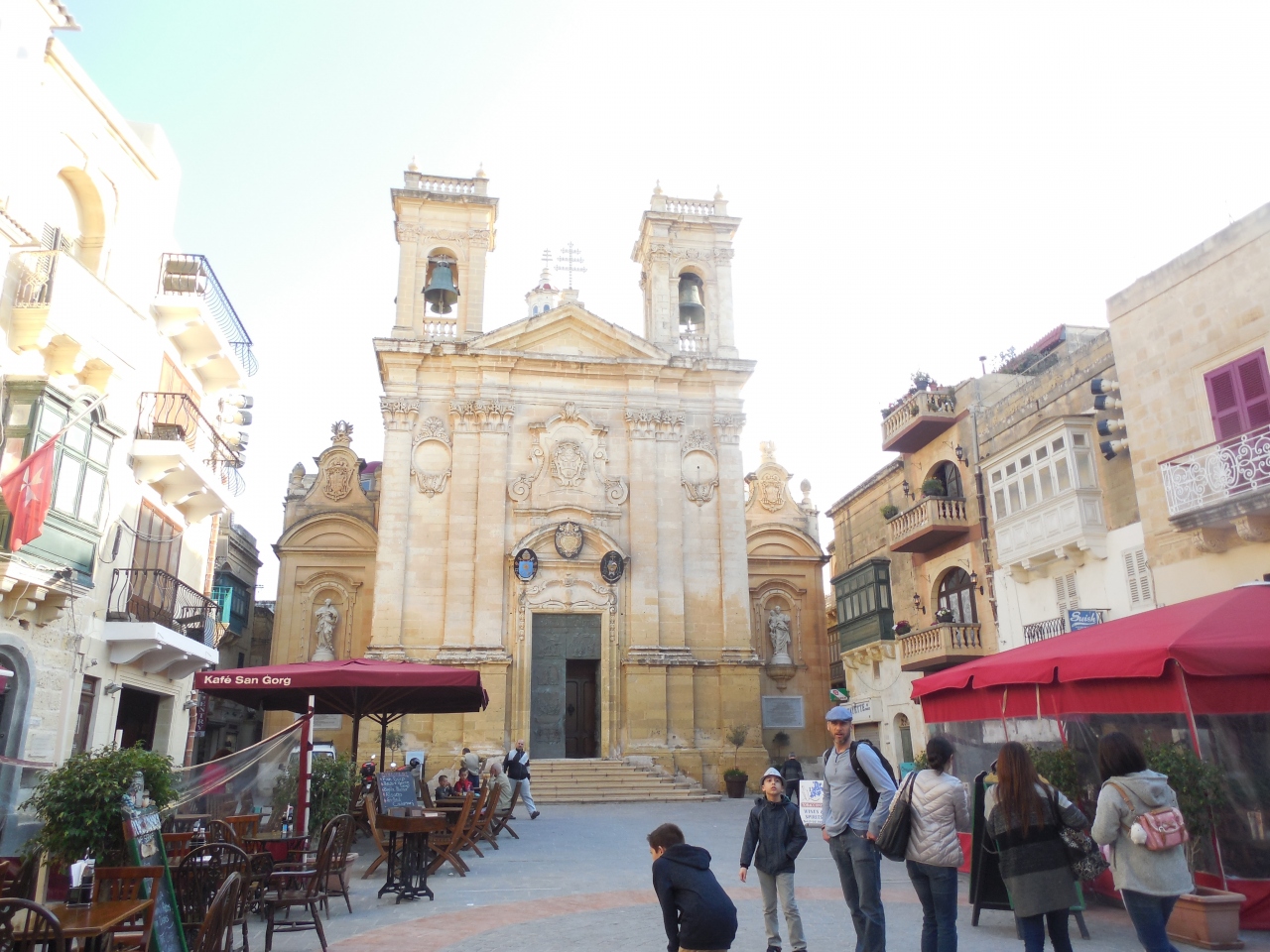セント ジョージ広場にそびえ立っていて外観は大理石と金色のしっくいに覆われ、巨大な扉はまるごとブロンズ製で、島内唯一のものだそうです。館内に入ると、目の前に現れる絢爛豪華な光景に釘づけになりました。装飾と光り輝く金色の細部装飾が全面に施され、目にもまばゆいほど。アーチには鮮やかな赤のドレープが下がり、壁や天井は聖書の物語を描いた絵画で埋め尽くされています。