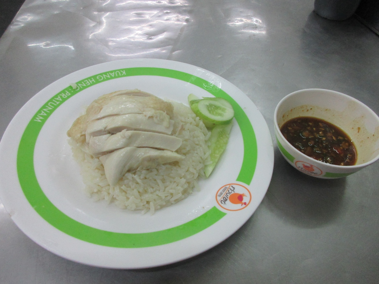 ピンクのカオマンガイが有名ですが、その隣にあるのがこのお店です。店員が緑色の服を着ているので、緑のカオマンガイと言われています。手ごろな値段で、おいしいカオマンガイを食べることができます。時間帯によっては行列ができます。