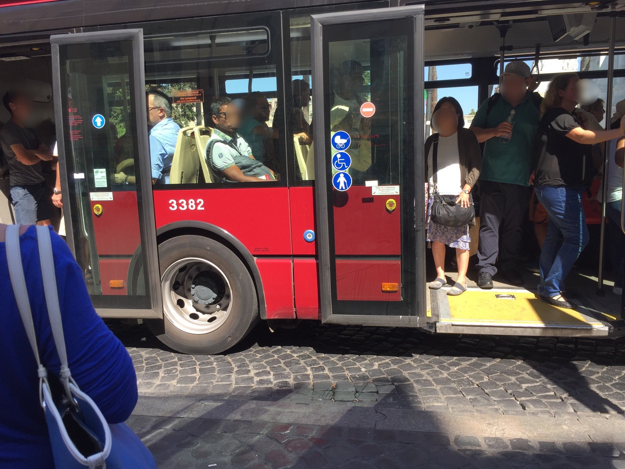 パンテオン付近から真実の口のある教会に向かうために乗りました。キヨスクのような街の売店で、1.5ユーロの一回券を買うと、バス、トラム、地下鉄など100分間はその券で乗り換え自由です。アテンドしてくれるガイドさんが一緒だったので、不安もなく利用出来ました。