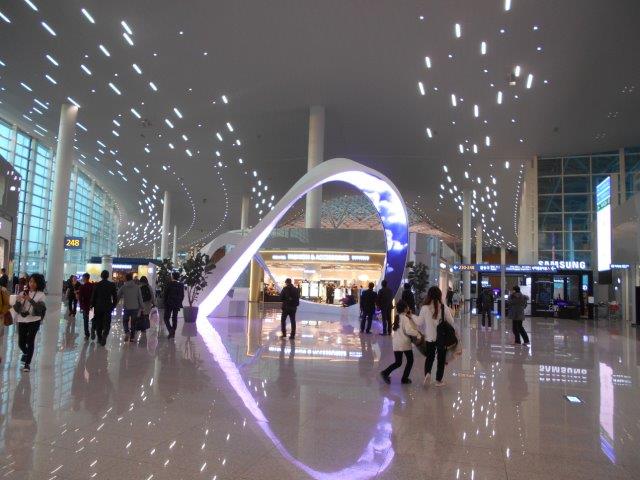 仁川空港はきれいで広くて、迷子になりそうなほど。出国後エリアも広く、たくさんのお店などがあります。今回の旅行は平昌オリンピックの時で、オリジナルグッズのお店を見つけました。ぬりぐるみやスノードームや文房具などがありました。いきなり買い物をしました。