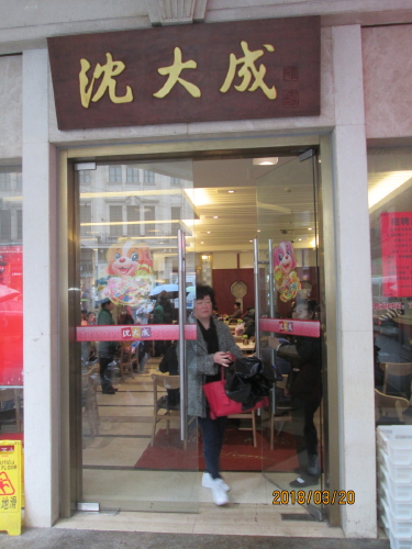 沈大成 点心 南京東路634号 1897年 安くて美味い老舗店。小売りはいつも殺人的な人ごみで、餅ひとつ買うのも一苦労だが、餅菓子好きにはたまらないものばかり、あんこの甘さ控えめで、どれを食べても美味い。中秋の月餅も有名だがこの時期採りたての草を使った草餅が大人気。行列を作っています。レストランも安くて美味しいメニュウが沢山、昼時は満員で待たねば成りません。