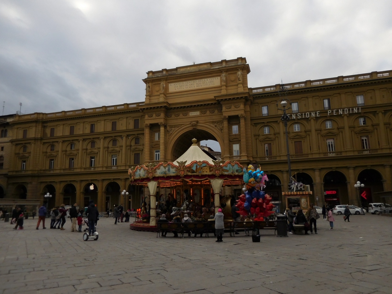 フィレンツェの街を歩き回っているときに通りかかりました。サン・ジョヴァンニ洗礼堂からローマ通りを南に進むと右手に見えてきます。観光客で賑わっている広場ですが、わざわざここを観光するために来た人はいないと思います。のんびりと旧市街で過ごす人々のたまり場といった感じでした。