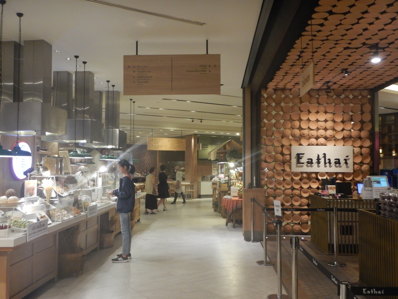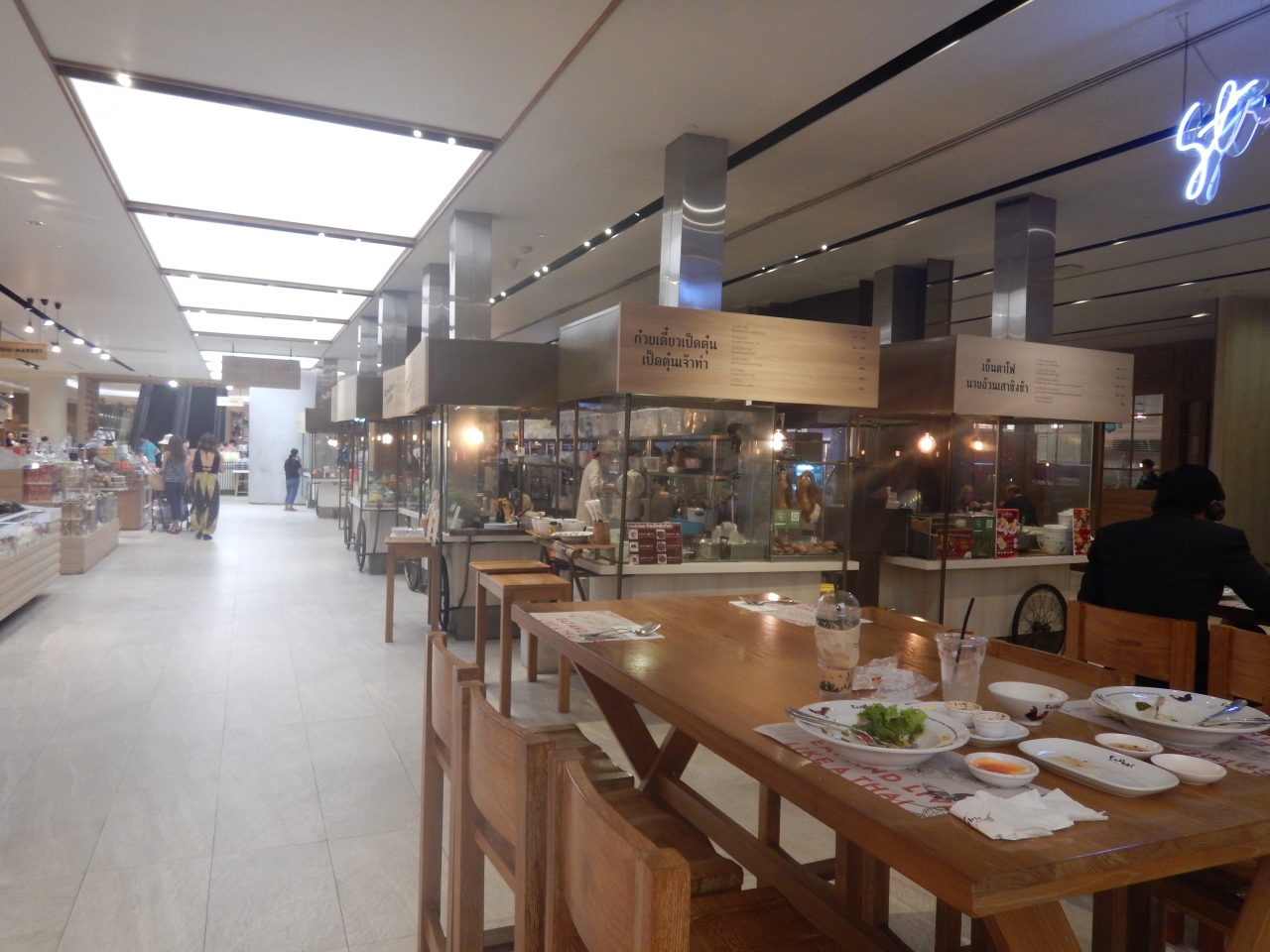 セントラルエンバシーの地下1階のあるフードコート。少し高級な雰囲気があるが、値段も一品100バーツからといった感じで、フードコートとしては少し高めだ。土産物になるタイのお菓子なども売っていた。さてどうしようかと迷ったが、食事はターミナル21ですることにした。