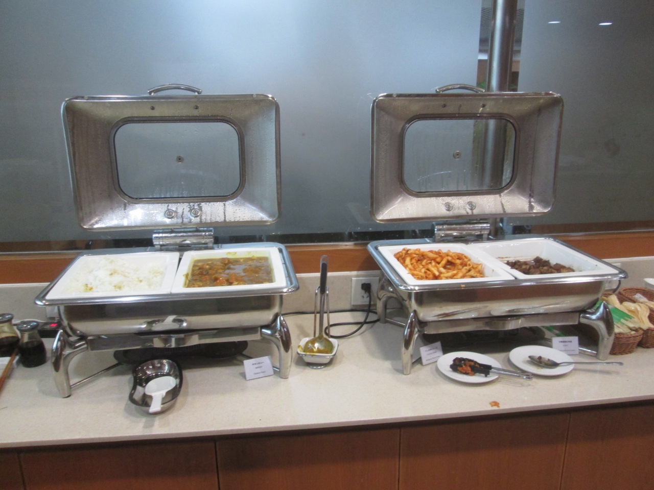 7月に利用したときは、JALサクララウンジのフードメニューに豚の角煮がありました。ここの角煮は人気で良く売り切れて、補充の繰り返しでした。定番のカレーにトッピングをして、自分だけの特別メニューを作りました。おいしかったので思わずお代わりをしてしまいました。