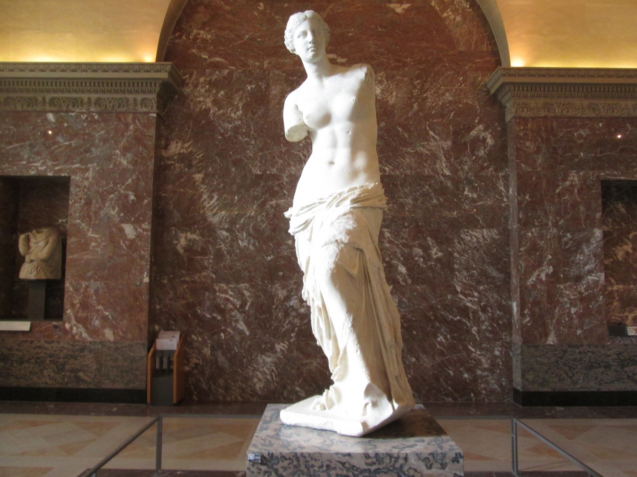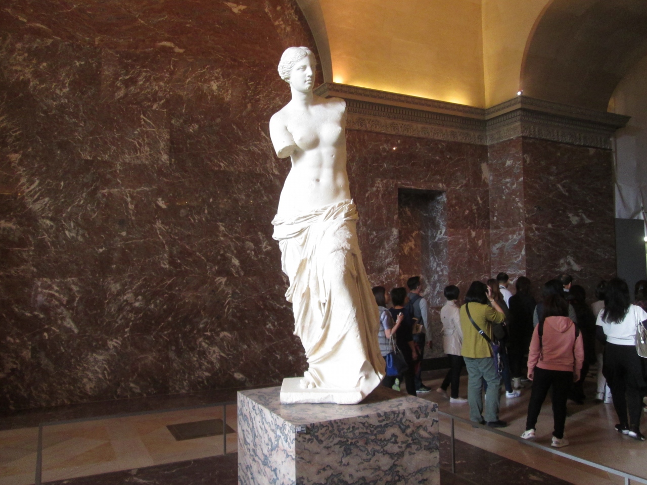 ルーヴル美術館に展示されている古代ギリシアで製作された彫刻です。モナリザと並んで ルーヴル所蔵の代表作です。モナリザほどではありませんでしたが、彫刻のすぐそばに近づけるということで、見学者が多く写真を撮影するのが難しかったです。もっとも気になるのは、両腕の欠損でした。壊れてしまったからこそ想像力が刺激される作品でした。