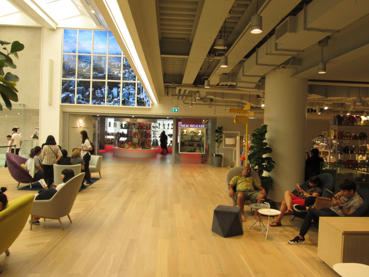 リニューアルオープンしてまもなく最新スポットなのか、来客の数が凄い多いです。館内は人人人で、休憩用の椅子も全て埋まっているような感じでした。1階のイベント会場では、有名は本、執筆者と思われるイベントが開催されていました。