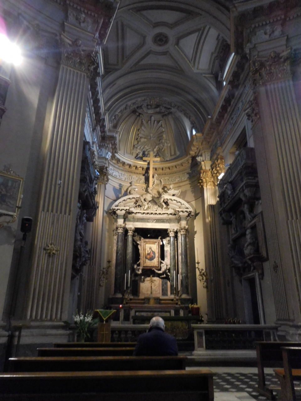 教会内部は意外とすっきりしていて、同じポポロ広場にあるサンタマリアデルポポロ教会に比べると物足りなさがあります。外観を楽しむだけで十分でしょう。