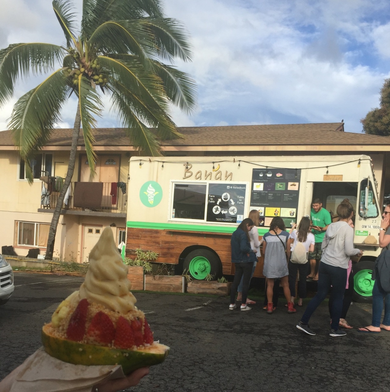 「BANAN」はダイヤモンドヘッド近く、モンサラット通り端にあるフードトラック。駐車場もあるし、テーブルやイスもあるので、気軽に立ち寄れます