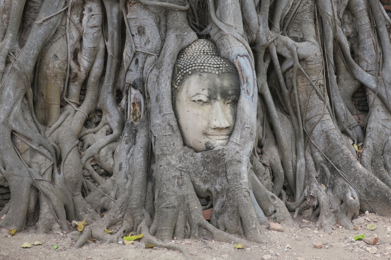 これは18世紀のビルマとの戦争中に放置された仏頭が長い年月の間に菩提樹に取り込まれたものだそうです.