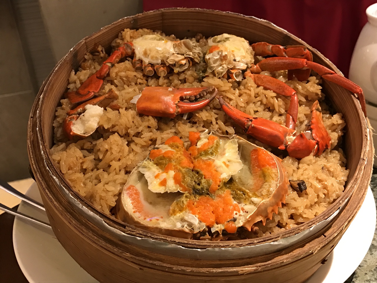 来店する前から食べようと決めていた蟹おこわとカラスミ炒飯、それに空心菜の炒め物と杏仁豆腐をオーダー。どれも美味しかったですが中でもカラスミ炒飯は絶品!そして杏仁豆腐!これも今まで食べたことがないようなモチモチした食感でたまらない美味しさでした。
