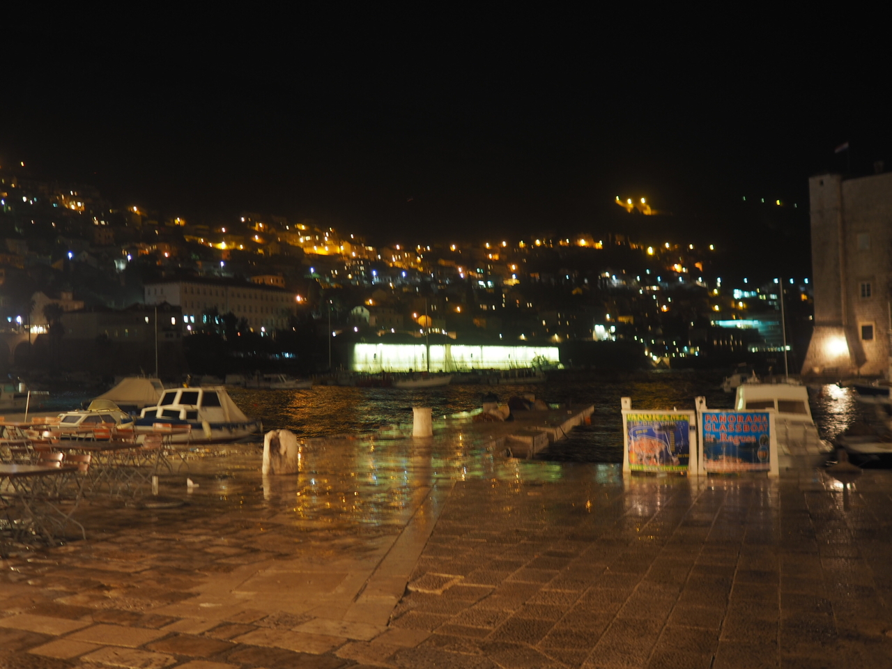 冬は特に昼間何かやっているかんじはしませんでしたが、夏は小さなクルーズ船やロクルム島行きのフェリーが出ています。冬も夏も夜景がきれいでした。ドブロブニク自体に猫は多いですが、特にここは猫がたくさんいます。