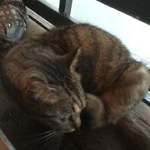 また、食事中にネコちゃんが現れ、膝の上にも乗って来ました。