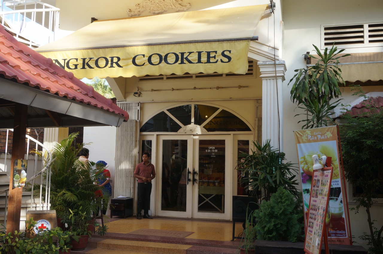 日本人の女性が作って売り出したそうです。外国のクッキーは糖分が少ないですが、ここのは日本で食べるのと同じように甘くておいしいです。アンコールワットの形をしていて、お土産にも最高です。ただし・・・壊れやすいのが玉にきず。