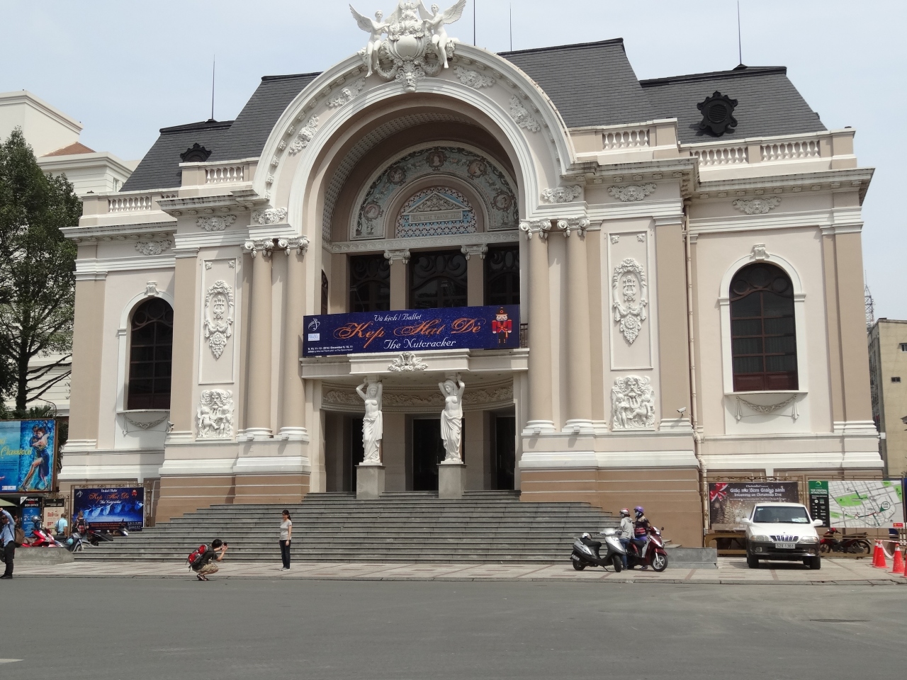 ホーチミンの中心地にあるオペラハウスです。西洋建築の美しい建物で、フランス統治時代の面影が残る建物です。100年以上前の建築なので、歴史的建物が好きな人にも見ごたえがあるスポットです。もちろん今でも現役の劇場で、建物の前には上映されている催しが出ています。