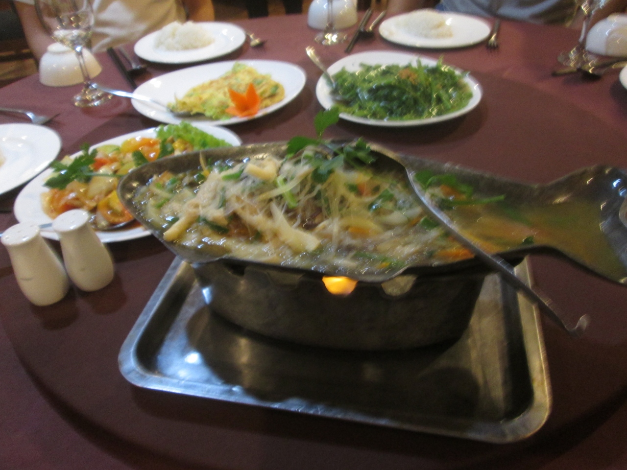 シェムリアップでは高級レストランに属すると思います。注文した料理は伝統的なクメール料理だと思いますが、どれもおいしくて、東南アジアの料理は辛い印象がありましたが、マイルドな味でおいしかったです。ライスはお代わり自由でした。テラス席も魅力的でしたが、利用した座席はエアコンが効いていたのが良かったです。