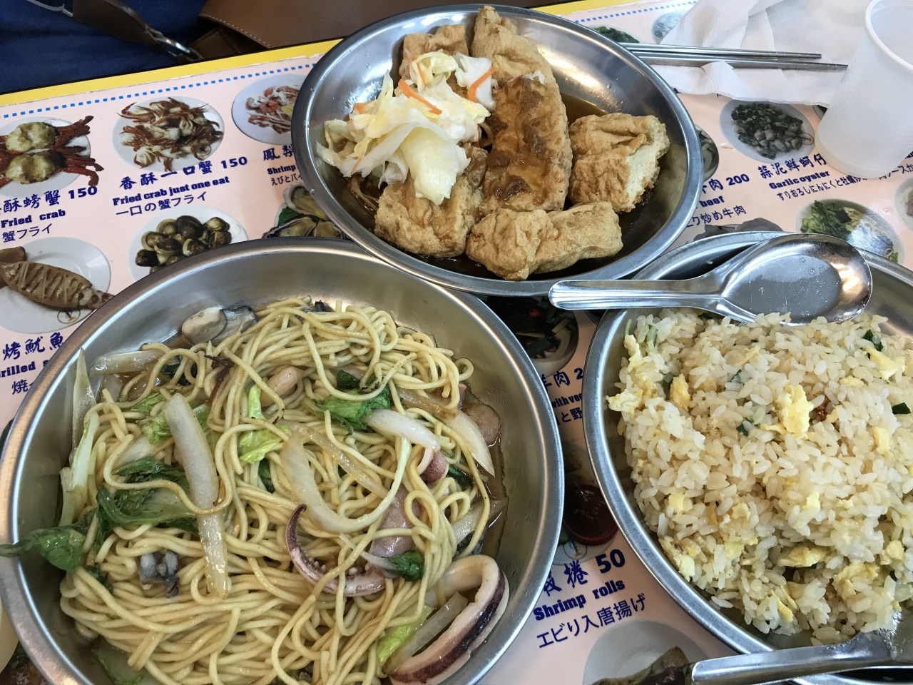 「夜市だったら士林に行きなさい」とガイドさんに勧められました。駅の改札口から夜市まで行列ができていて、迷うことなくたどり着けます。暗くなるころには通路の真ん中にも屋台が並び、地元の若者と旅行客であふれかえります。地上にもたくさんの屋台がありますが、おすすめは地下の美食區(フードコート)です。B級グルメの宝庫、思ったよりきれいでテーブル席もあります。写真付きの日本語メニューもあり、安心して注文できました。トイレもきれいでした。