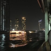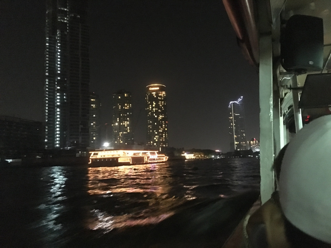 BTSサパーンタクシン駅の真下にある船着き場からチャオプラヤ川経由でアジアティーク・ザ・リバーフロントを訪ねました。同じ船着き場から周辺の高級ホテルを結ぶ送迎ボートや、がんがん音楽を鳴らして大騒ぎのディナークルーズ船も行き交いますが、アジアティーク行きは乗船無料。川が船で渋滞していても十数分で着いてしまうのであっという間ではありますが、一時クルーズ気分を味わえます。近くで見ると決して水質の麗しい川ではないので、暗くなってから乗るのが良いかと。