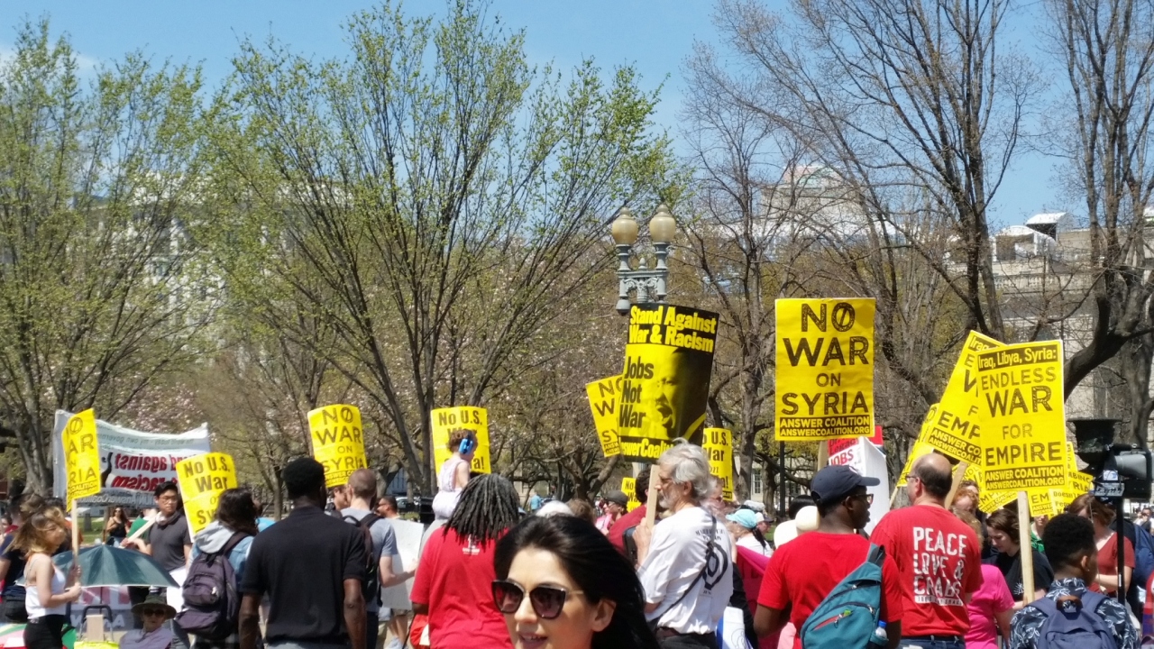 ツアーで訪問しました。真っ白な大統領官邸です。中に入るには、アメリカ国会議員を介した申し込みが必要で、しかも半年前に予約しなければならないそうです。柵の外から眺めました。この館の主の一言が世界を動かしています。官邸表にはデモ隊。朝からテレビで「シリア攻撃」のニュースばかり。実感しました。