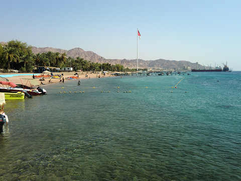 ヨルダンの唯一の海辺の町アカバのビーチです。