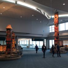 空港内は大小さまざまなトーテムポールを始めユニークな彫像の類があちこちで旅人を迎えてくれます。公共交通機関スカイトレインでダウンタウンを始め、都心の主だった場所へのアクセスも至便。コンパクトな空港内には案内板も十分配置され、初訪問でも安心でした。