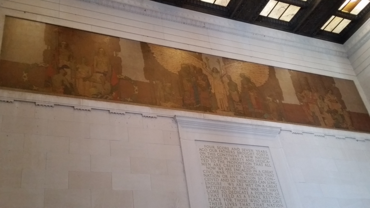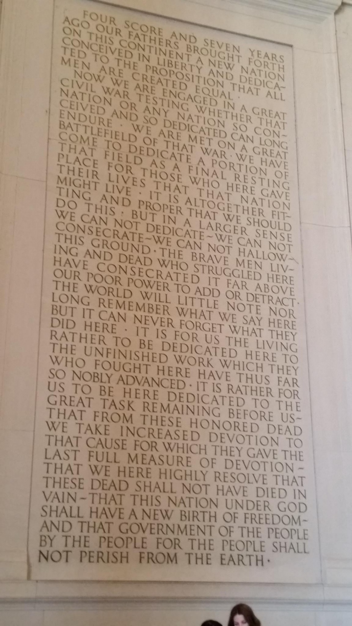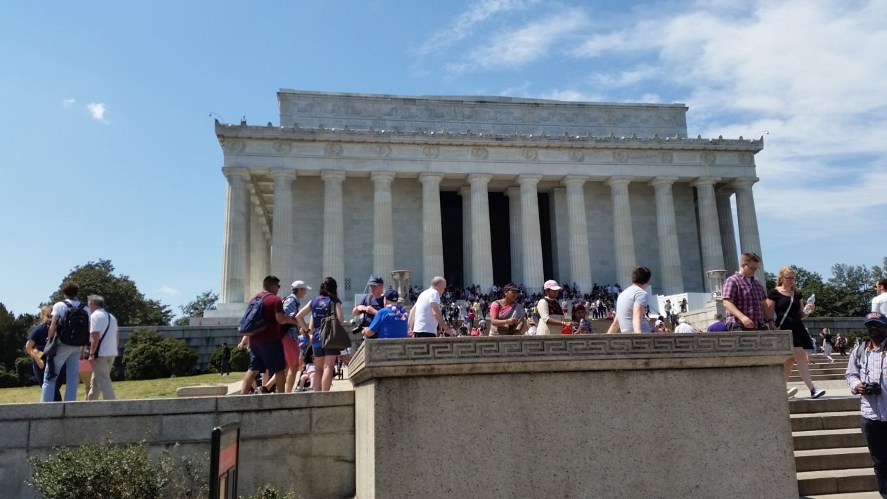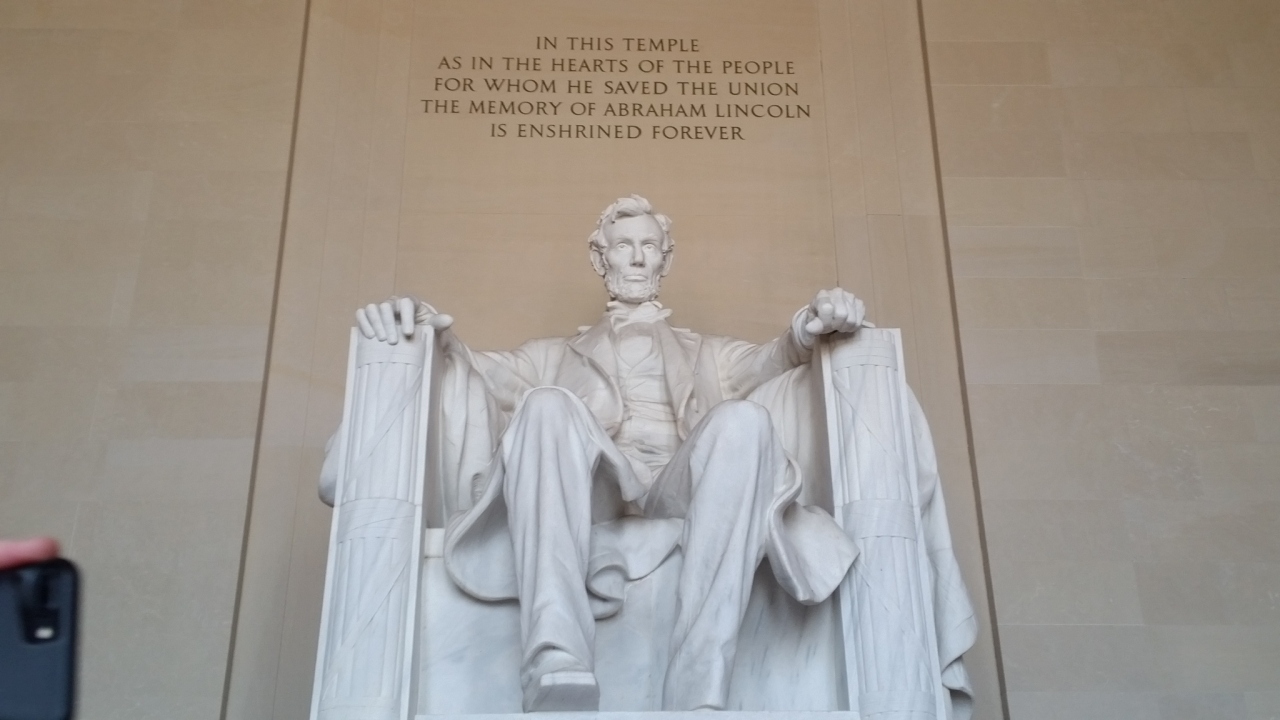 ツアーで訪問しました。見上げるとギリシア神殿を思わせるような白亜の神殿です。第16代大統領エイブラハム・リンカーンの偉業をたたえるために建立されました。視線は国会議事堂に向けられています。現代の国会議員の働きぶりを見ているかのようで、面白いです。つま先からの高さは5.8mで重さは175tあります。壁にはゲティスバーグの演説が彫られています。