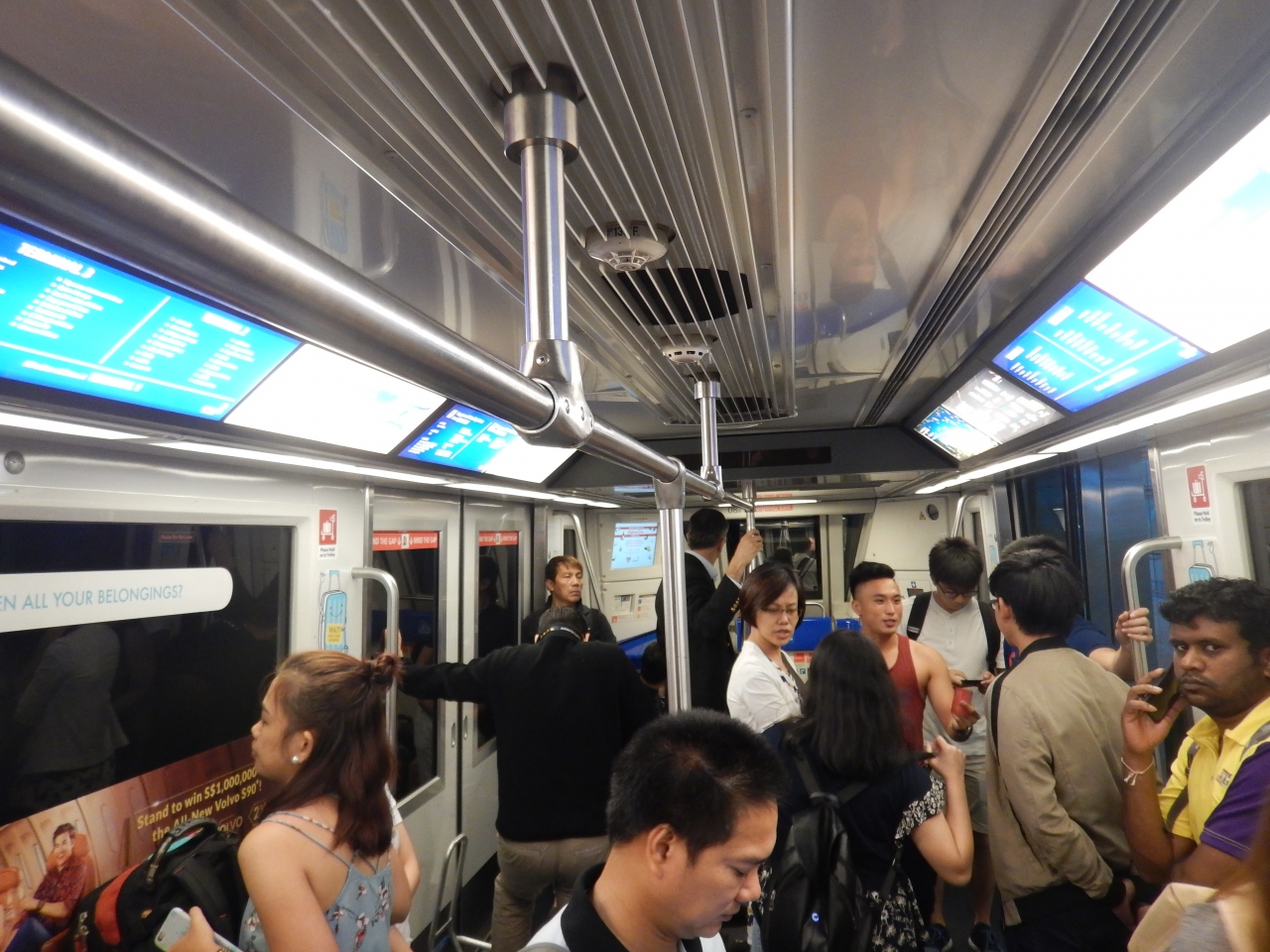 第一ターミナルから今回は第二ではなく第三ターミナルへ移動した。MRTのチャンギ空港駅は第二からしか行かれないと思っていたが、第三からもMRTの駅に行けることが分かったので前回と異なるターミナルかへ移動した。スカイトレインの中はかなり混雑していた。