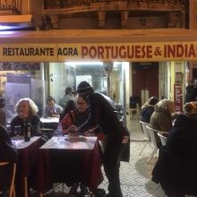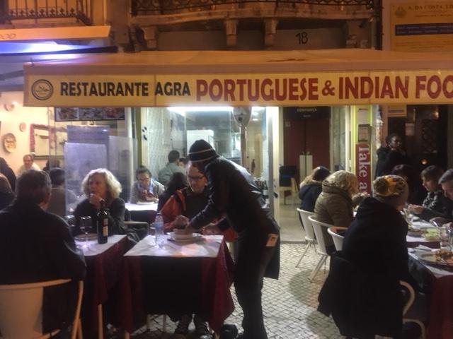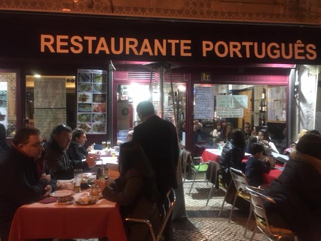ガイドブックでも紹介されている「ア・ジンジーニァ」というサクランボのお酒の店に行った際、その奥が長いレストラン街になっており、冬でもテラス席は大盛況。