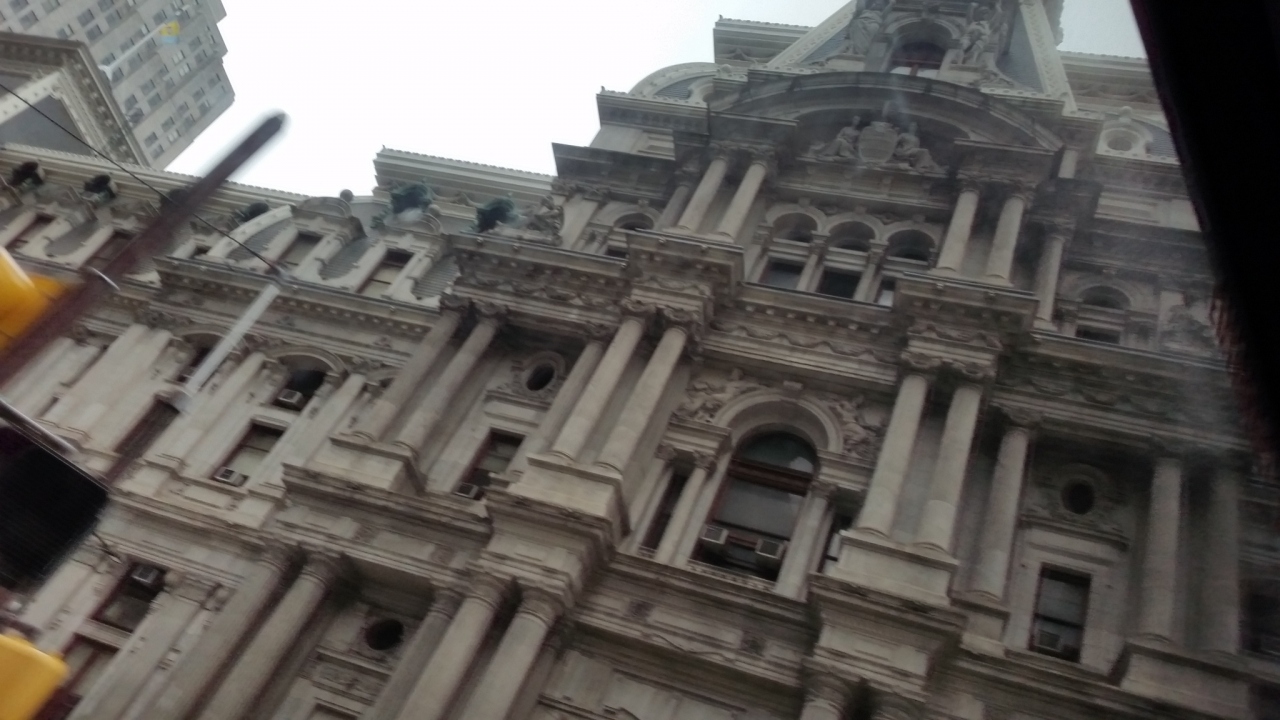 ツアーで通りました。フィラデルフィアの中心にあり、高さ167m、1987年まではフィラデルフィアで最も高い建物だったそうです。今はもっと高い建物に囲まれていますが。建物が立体的で、市庁舎と言われなければそう思えませんでした。