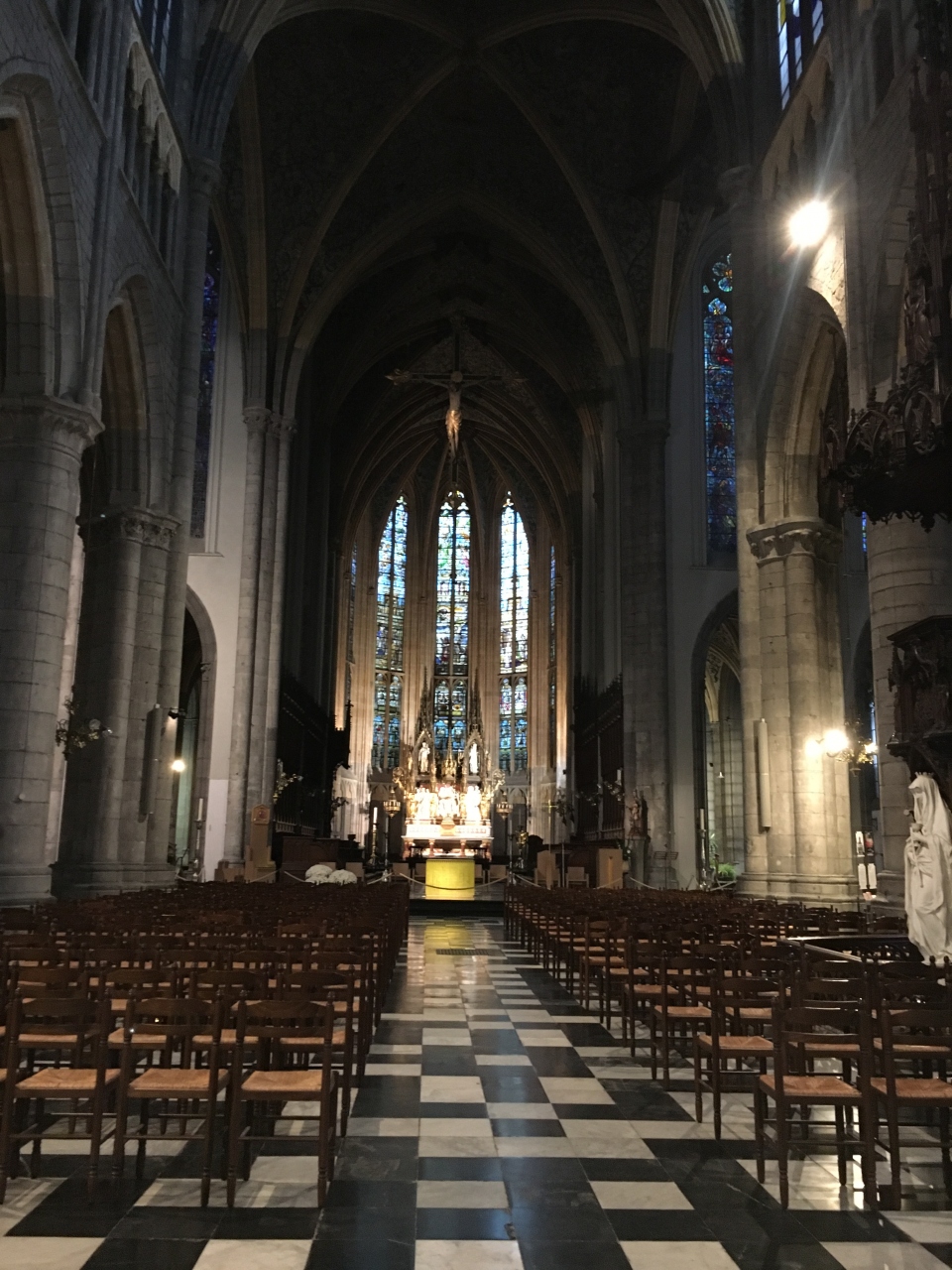 リエージュの観光スポットである教会のステンドグラスを見に行ったのですが、白黒の石で敷き詰められた床とのコントラストがとても綺麗でした。教会前の広場に面してワッフルNO1の”POLLUX"が有るのも嬉しいです。