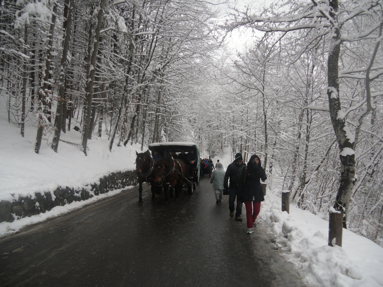 4月でも雪のドイツ各地を観光して、ノイシュバンシュタイン城も雪で、勾配の坂道を上がりましたが、却って幻想的に感じました。城はルードリッヒ2世の夢が詰まった内部で豪華な装飾がどこかしこにちりばめられて、地下の池には白鳥の塑像がありで、惜しみなく財力を使った結果の悲しい結末が物語として人気になっています。馬車も在りますが、多くの観光客と徒歩で上がりました。