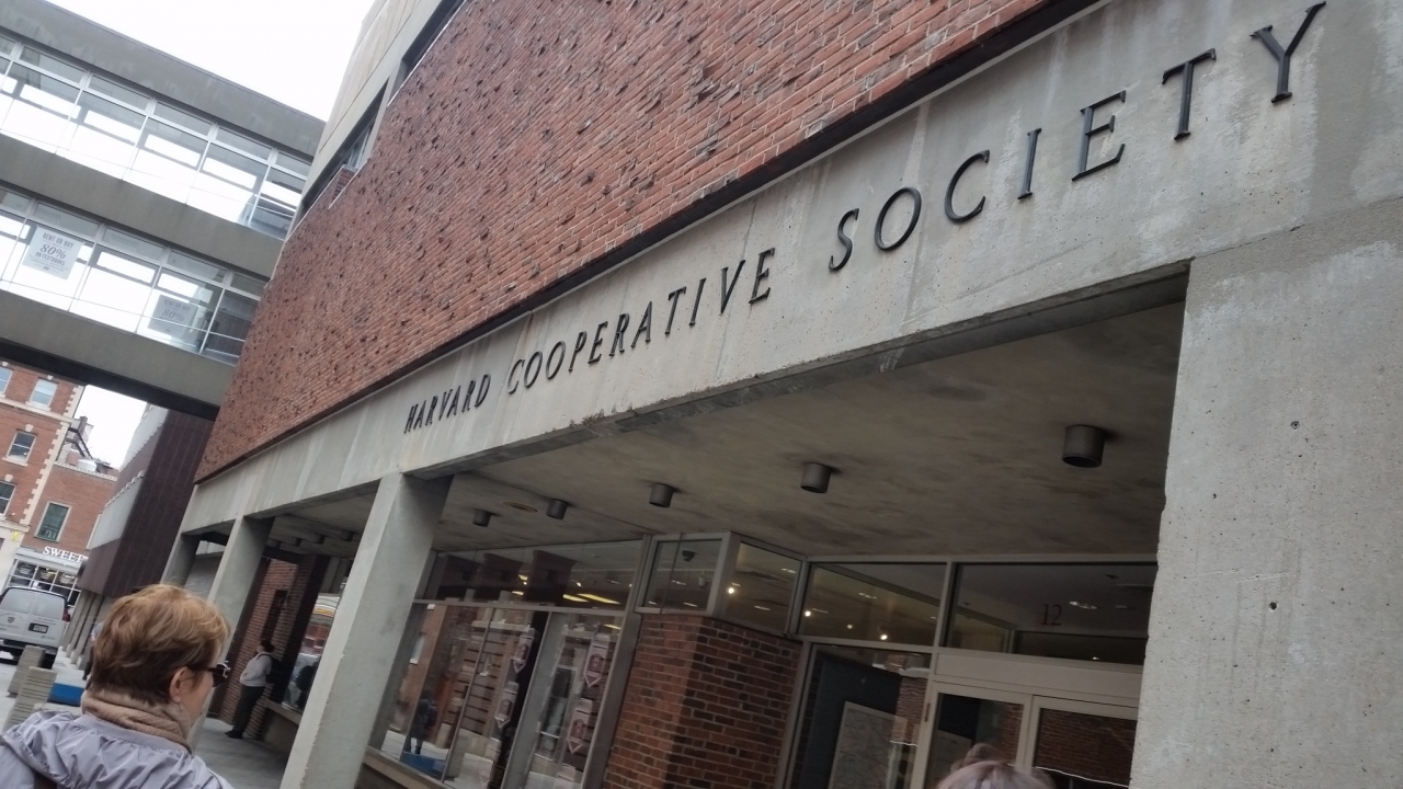 ツアーでハーバード大学の建物見学をし、最後に生協に来ました。2階建てで、小さなスーパーくらいの広さです。大学名入りの文房具、衣類、チョコレートなど、品数も豊富で、見るのも買い物するのも楽しいです。校名入りの商品を入れるビニル袋は1枚0.1ドルでした。