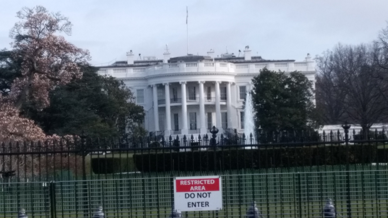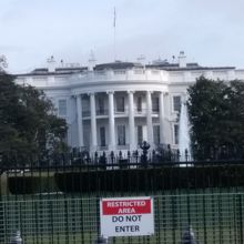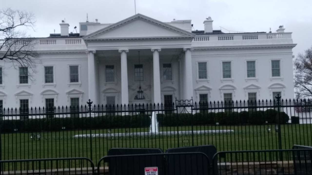 初めてみたときは、テレビで見るホワイトハウスだと感激しましたが、やはり厳重な警備で、建物までが予想以上にとても遠かったです。柵の前には警察官と警察犬がいます。