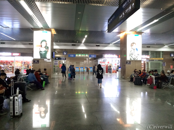 待合室は北京に比べたら狭くお店も少ないですが
