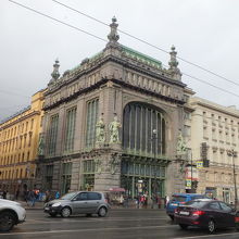 通りを挟んで立つエリセーエフスキーの建物は近くで素敵なショーウィンドーを眺めるのもいいですが、ここから見ると建物上の像も見えて全体像が分かっておススメです。、