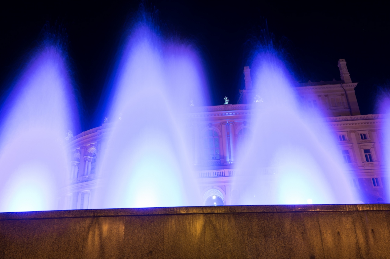 夜は噴水がライトアップされ周りにローカルの人がくつろいでいる場所