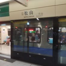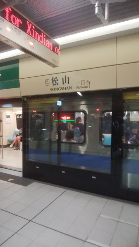 台北中心部から、この駅を最寄り駅とする饒河街観光夜市に行くために、こちらで下車しました。MRTの松山新店線の終点のため乗り過ごすことはないです。土曜日の夜だったのですが、台北でも随一の夜市のある場所の最寄り駅のためか、意外に乗降客は多かったです。饒河街観光夜市のための案内サインが特別に設置されているわけではないので、出口表示の案内サインで饒河街を見つけて、最寄りの出口を探す必要があるので注意です。